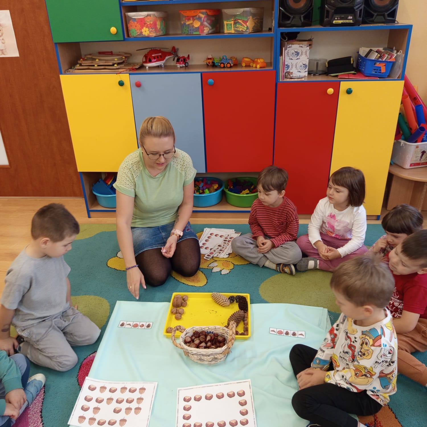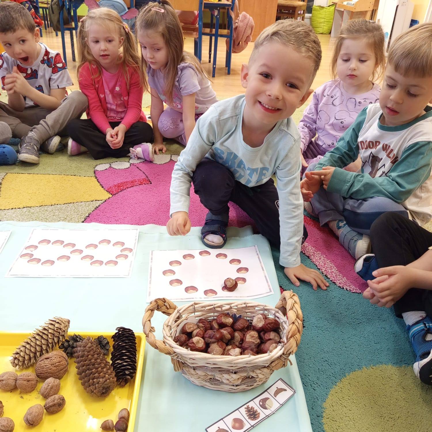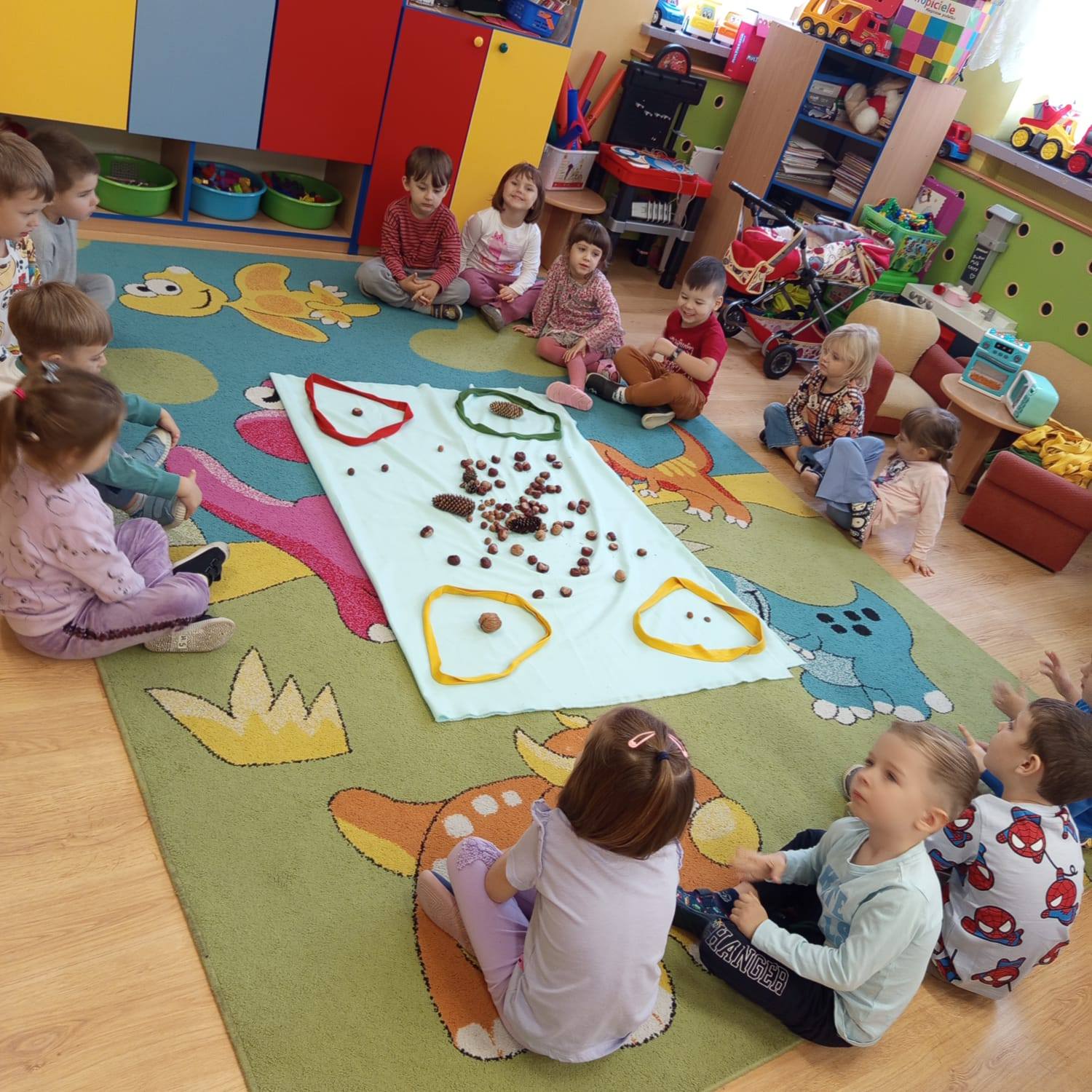 Misie po raz kolejny przystąpiły do ogólnopolskiego projektu matematycznego, którego celem jest realizacja Dziecięcej Matematyki autorstwa prof. E. Gruszczyk-Kolczyńskiej w grupie przedszkolnej zgodnie z założeniami koncepcji oraz, co równie ważne, angażowanie i inspirowanie rodziców przedszkolaków do codziennej aktywności matematycznej z wykorzystaniem sytuacji życiowych. Dziś tematem przewodnim zajec były dary jesieni – Misie klasyfikowały, segregowaly i utrwalały poznane już figury geometryczne. Zajęcia sprzyjały rozwijaniu umiejętności matematycznych w toku codziennej działalności dzieci.
