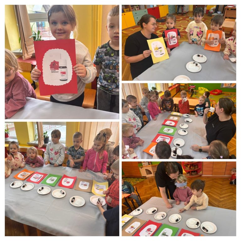 ,, Biedronki, „ wykonały kolejne zadanie z projektu ,, Gramy Zmysłami”, które dotyczyło węchu.Zajęcia sensoryczne węchowe to zabawy rozwijające zmysł powonienia poprzez wąchanie i rozpoznawanie