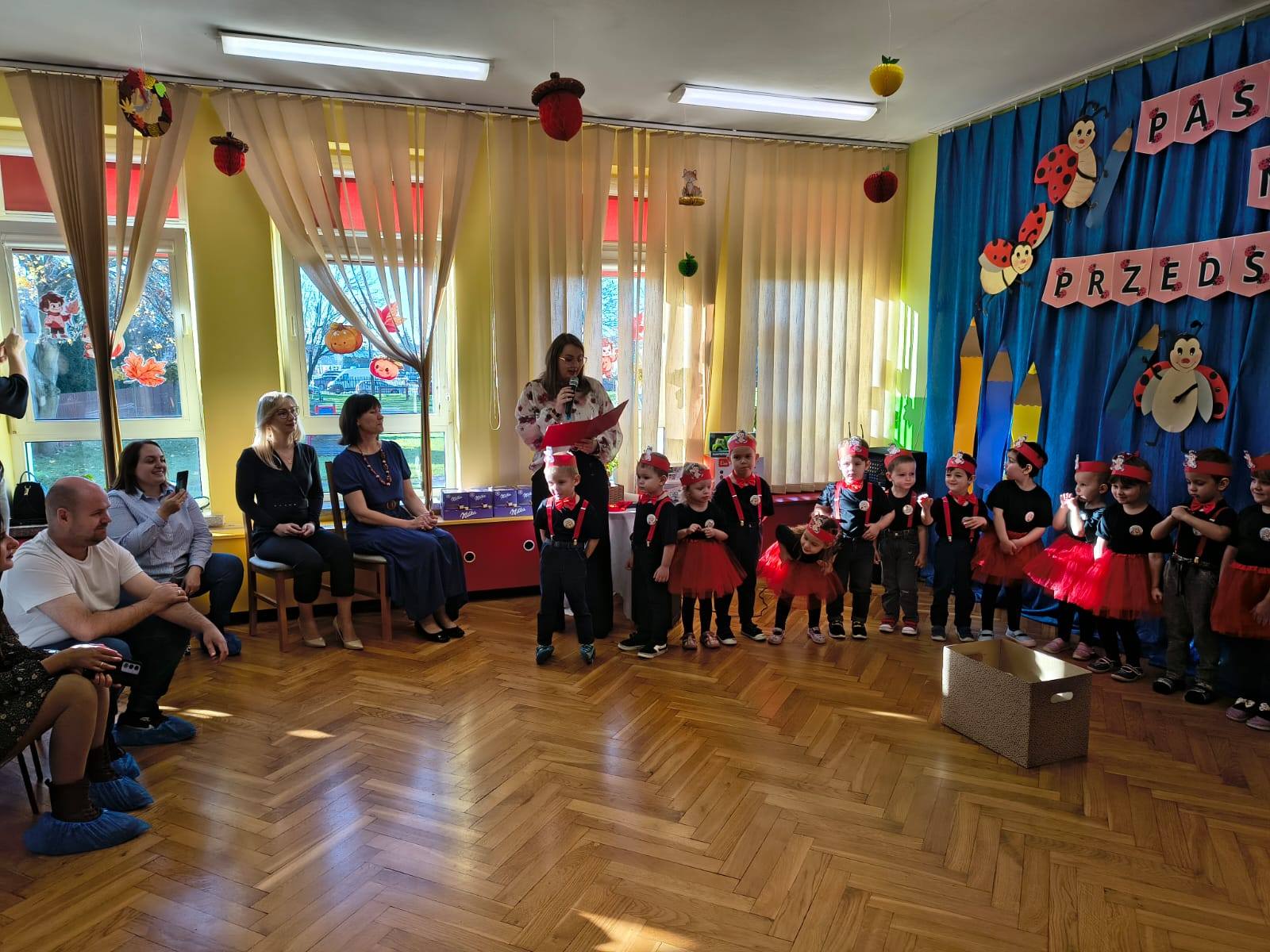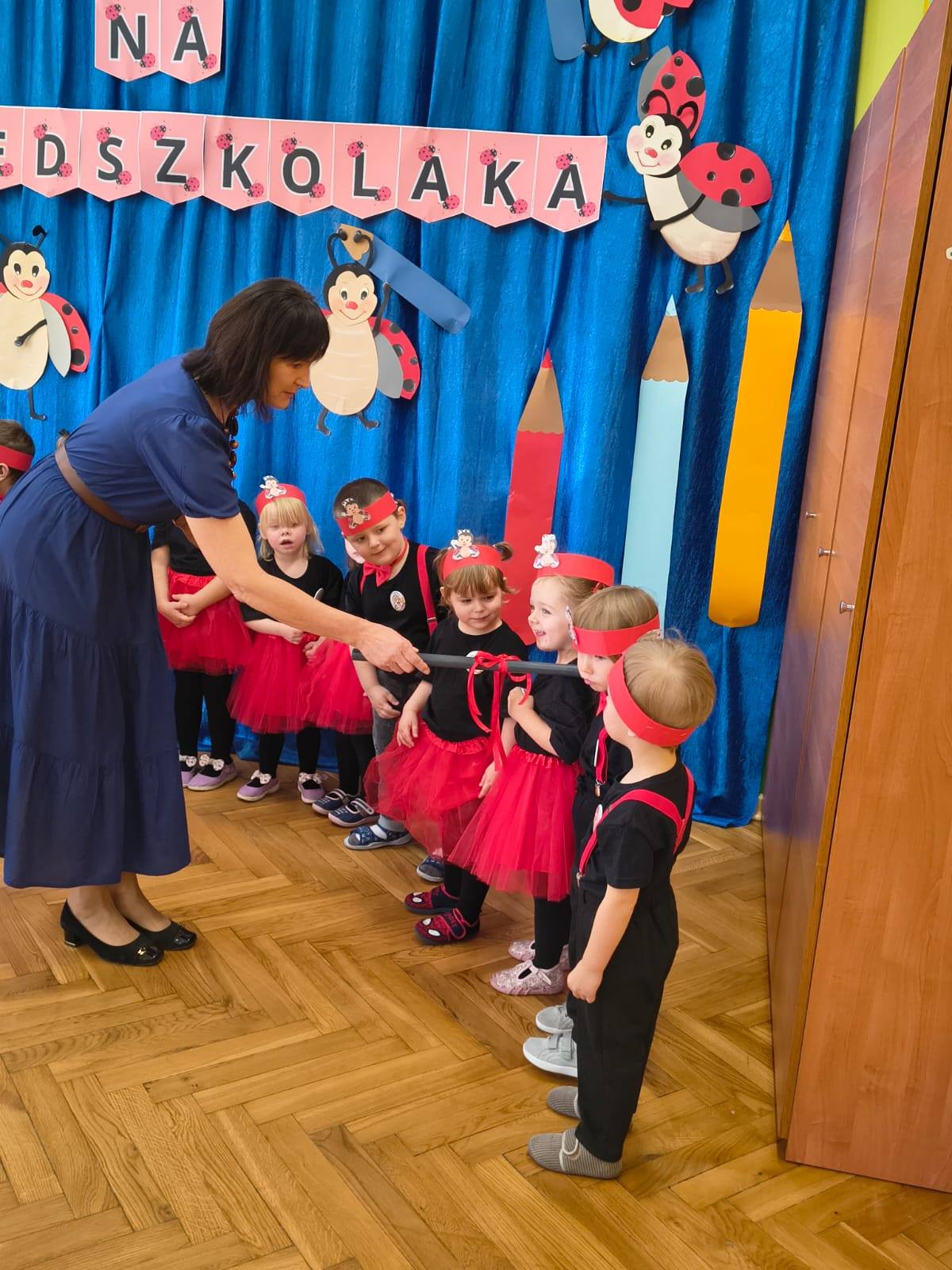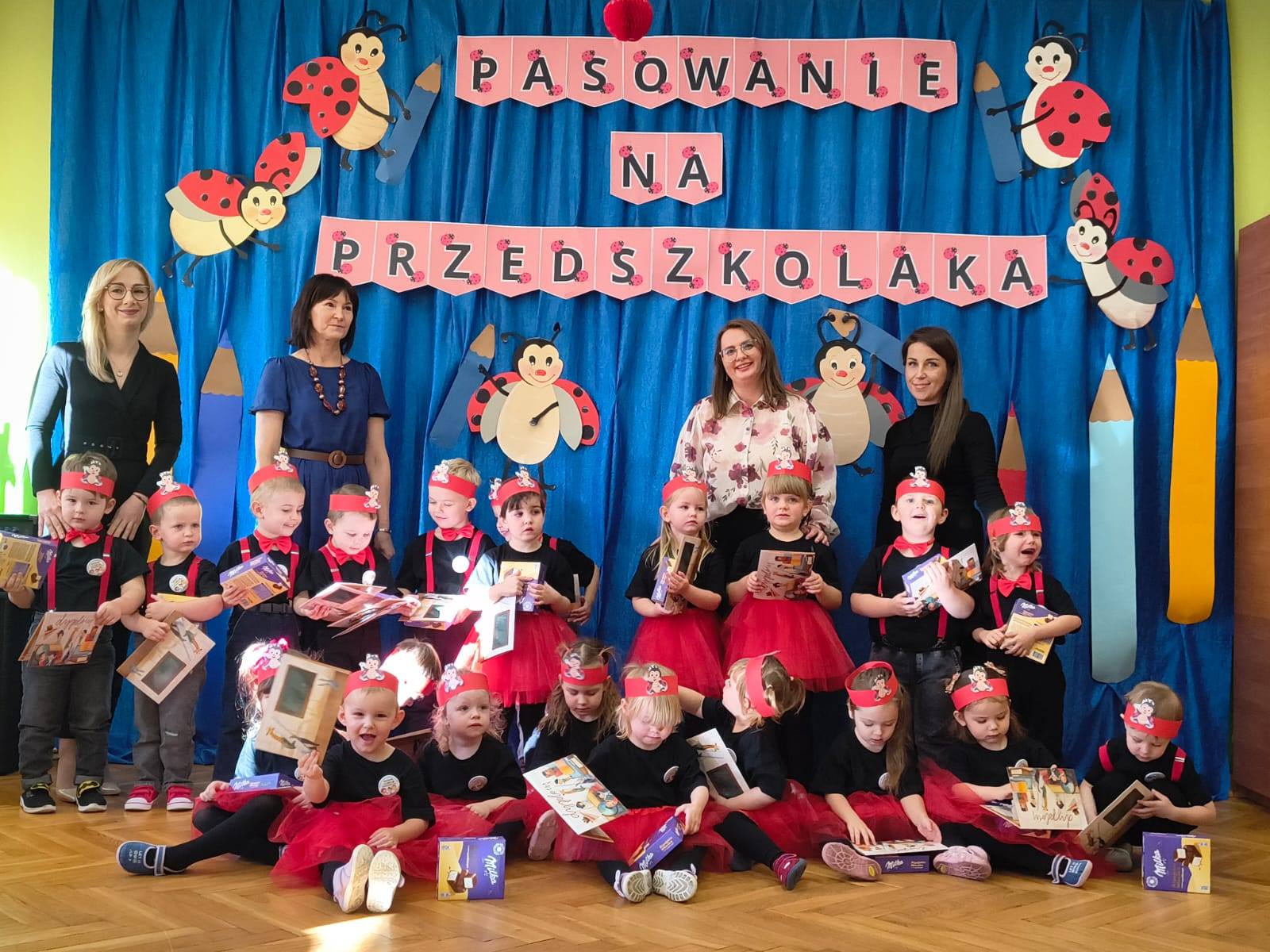 Podczas występu dzieci zaprezentowały swoje umiejętności, wzbudzając zachwyt wśród rodziców i nauczycieli. Pani Dyrektor dokonała uroczystego pasowania, a każdy przedszkolak otrzymał dyplom oraz słodki upominek, by umilić ten wyjątkowy dzień.