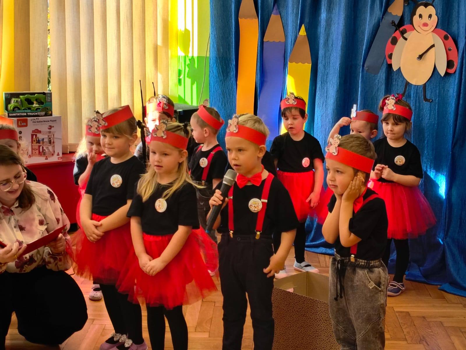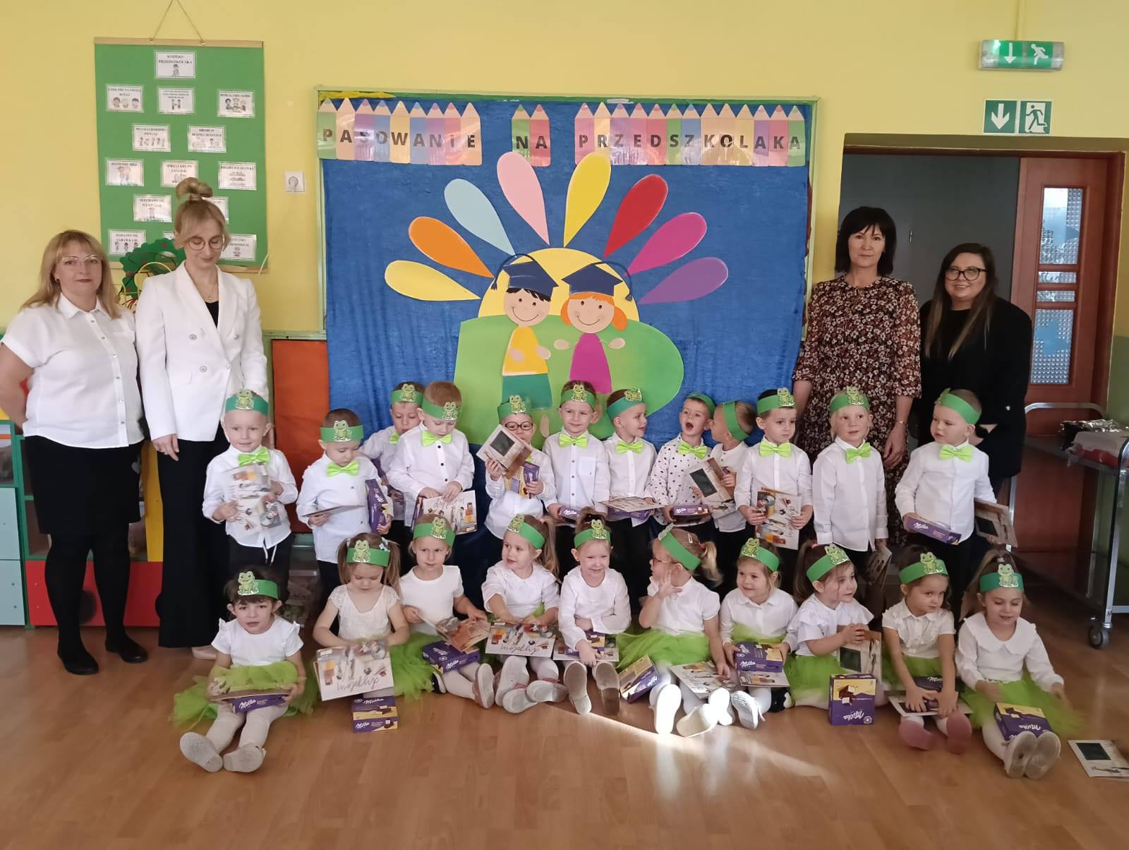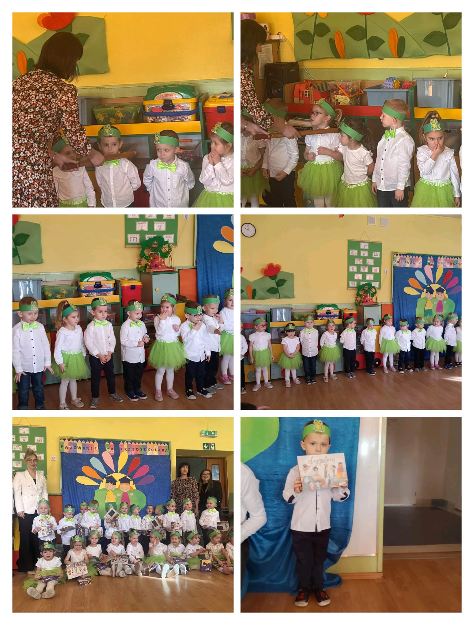 Podczas występu dzieci zaprezentowały swoje umiejętności, wzbudzając zachwyt wśród rodziców i nauczycieli. Pani Dyrektor dokonała uroczystego pasowania, a każdy przedszkolak otrzymał dyplom oraz słodki upominek, by umilić ten wyjątkowy dzień.