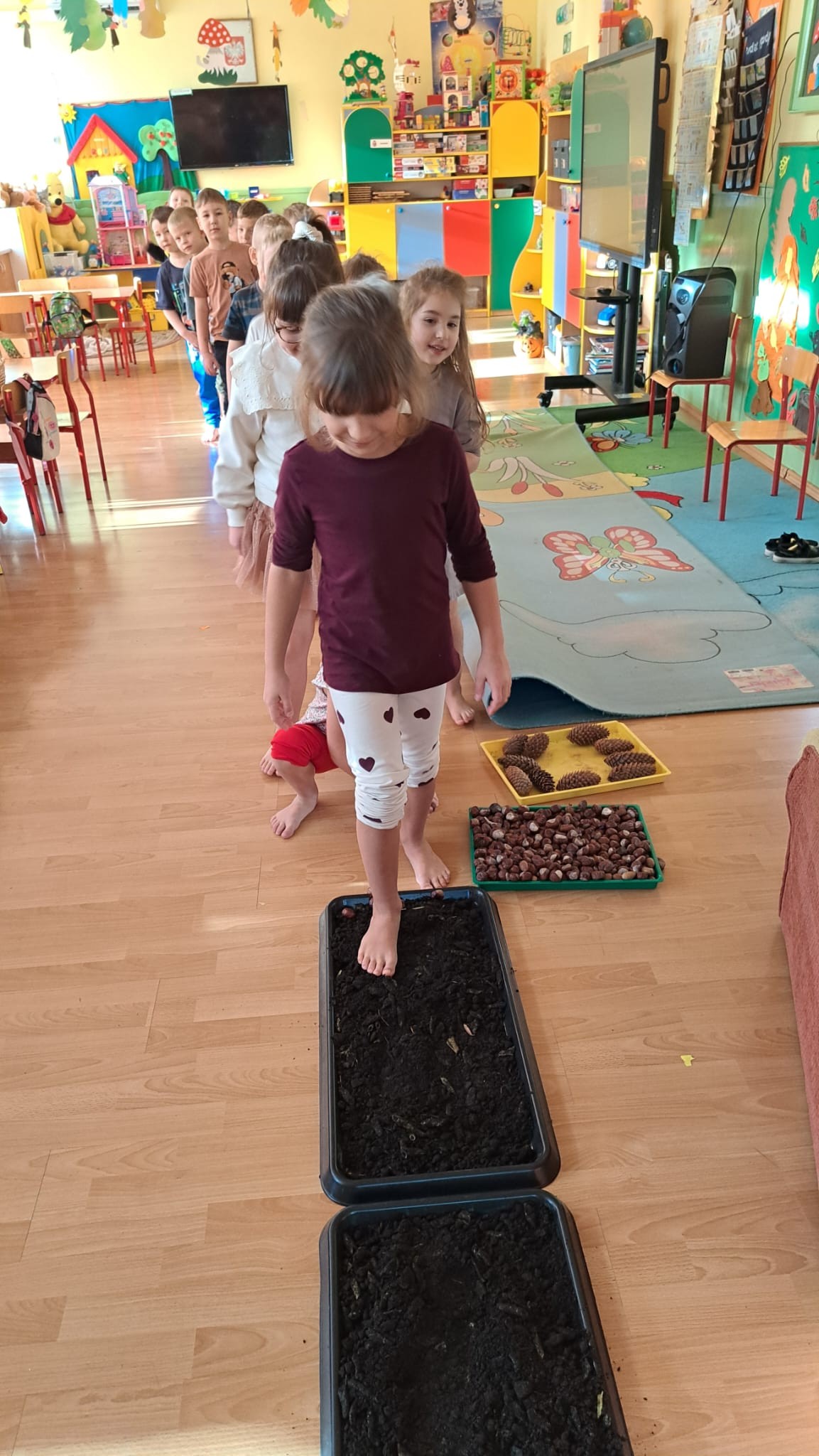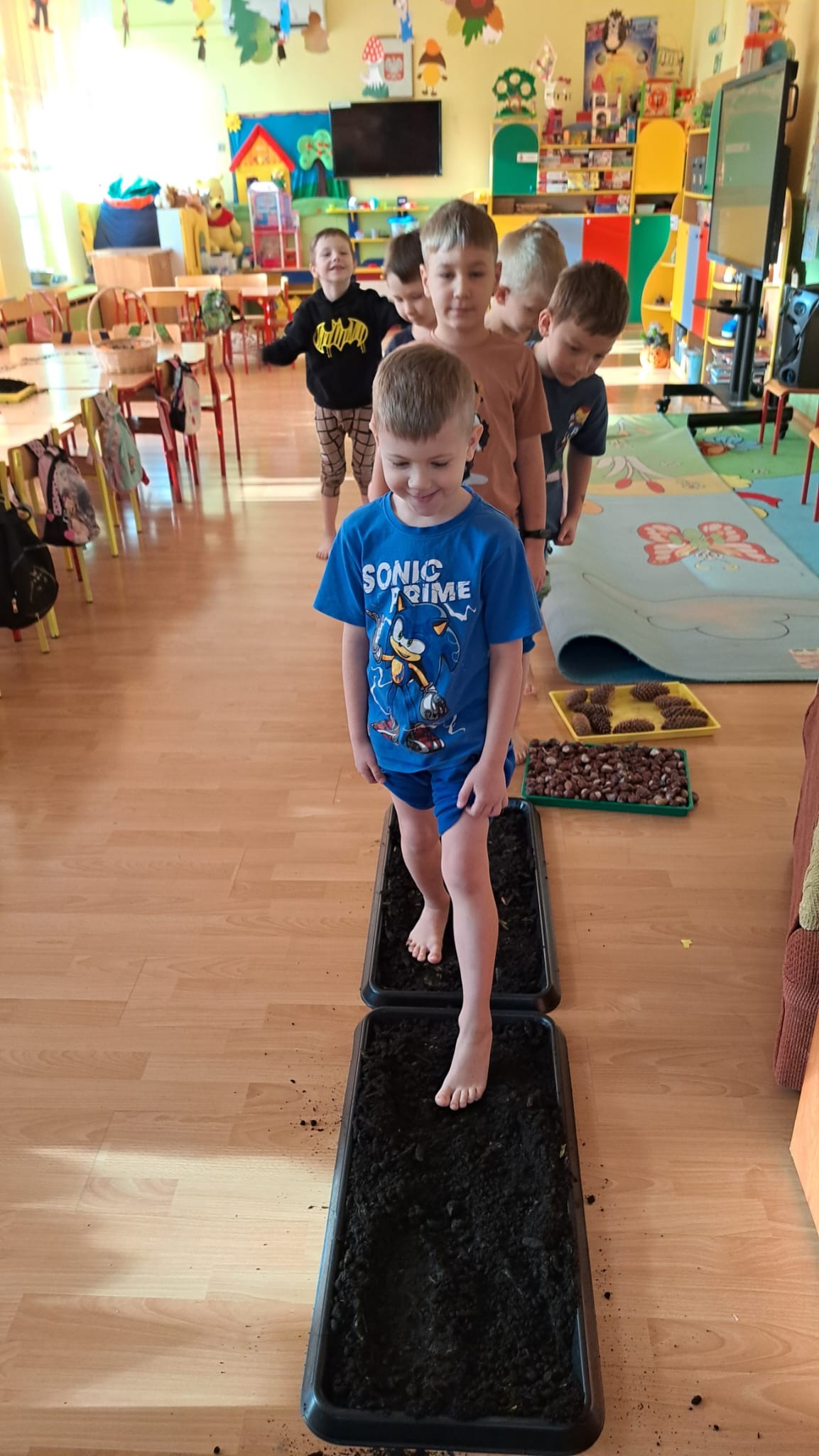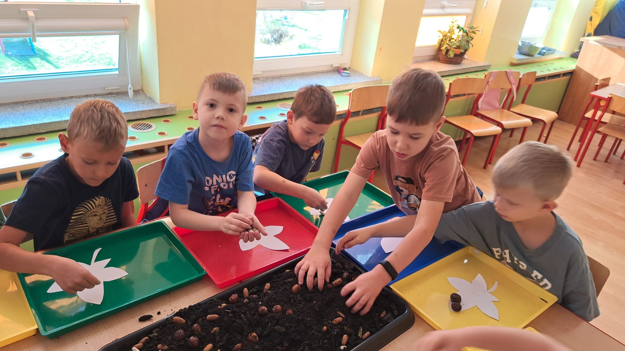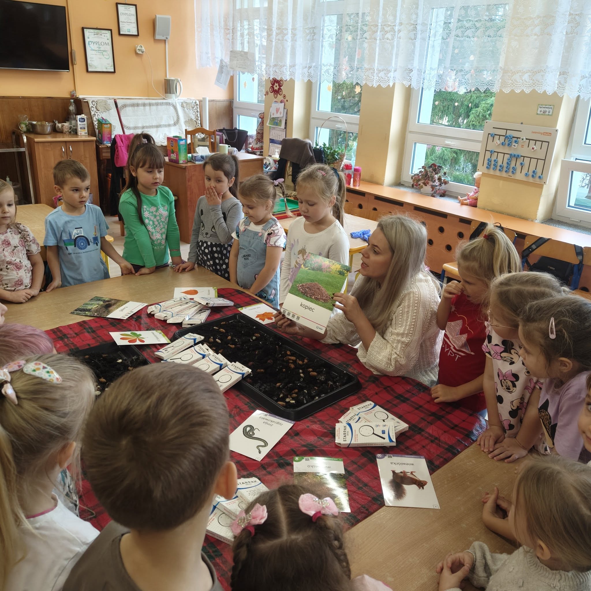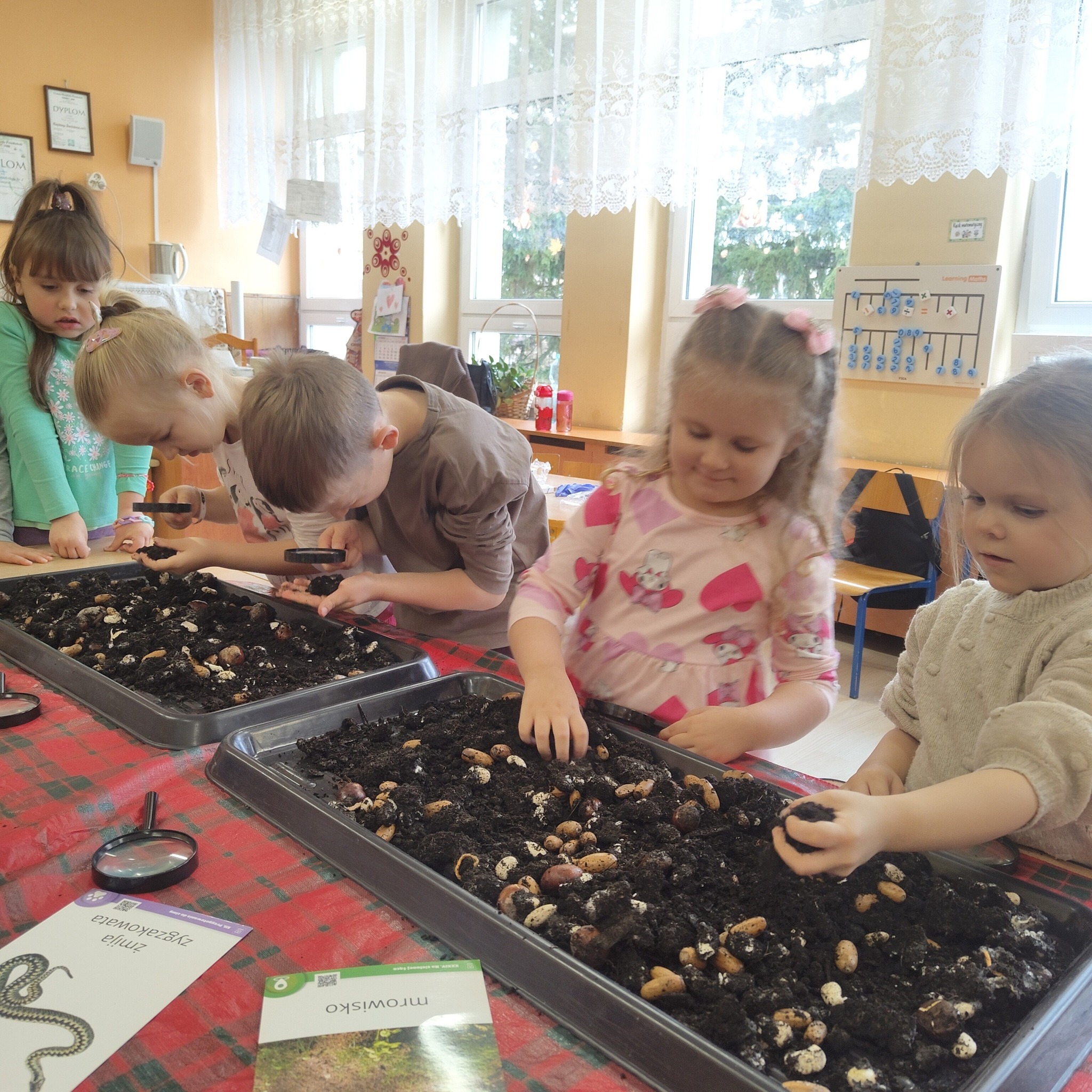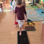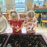 brały udział w projekcie sensorycznym „Gleba pod stopami i lupą „. Przedszkolaki porozmawiały o tym, że Ziemia jest jedyną zamieszkaną planetą i jednocześnie naszym domem, więc musimy o nią dbać jak najlepiej potrafimy, próbowały ocenić co czuje Ziemia gdy o nią dbamy, a także jakie emocje odczuwa gdy jest niszczona.Nastepnie przeszły do zajęć badawczych, których celem jest zdobywanie wiedzy i poznawanie otaczającego świata. Dzieci z naszej grupy badały ziemię za pomocą zmysłów. Każdy miał możliwość dotknięcia, poznania właściwości oraz wagę ziemi, kory i próchnicy.