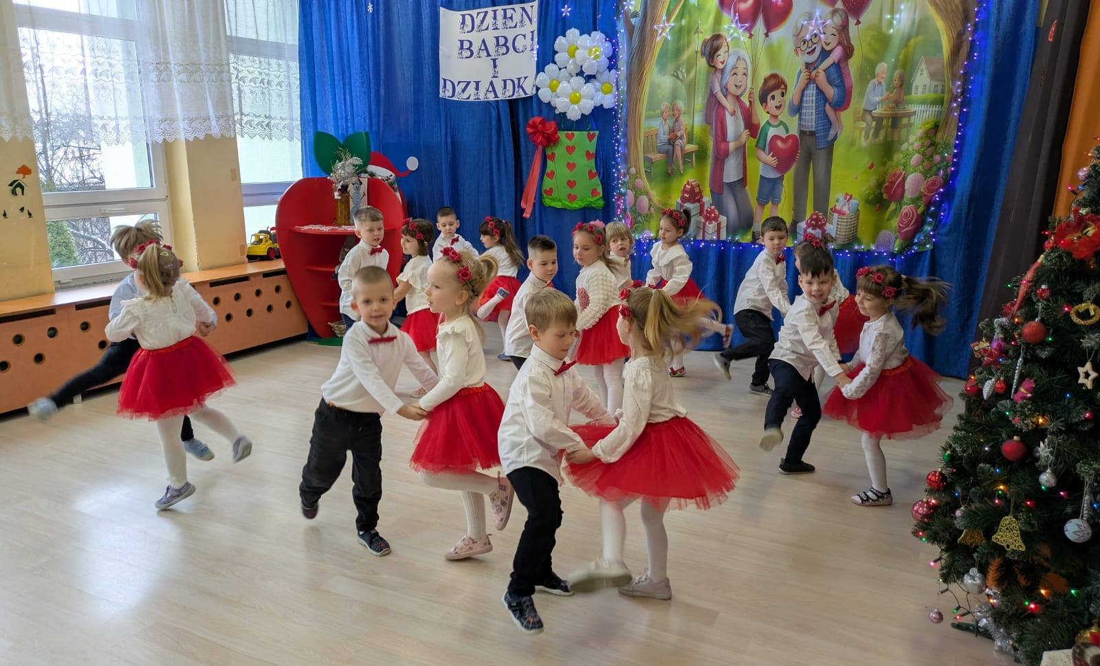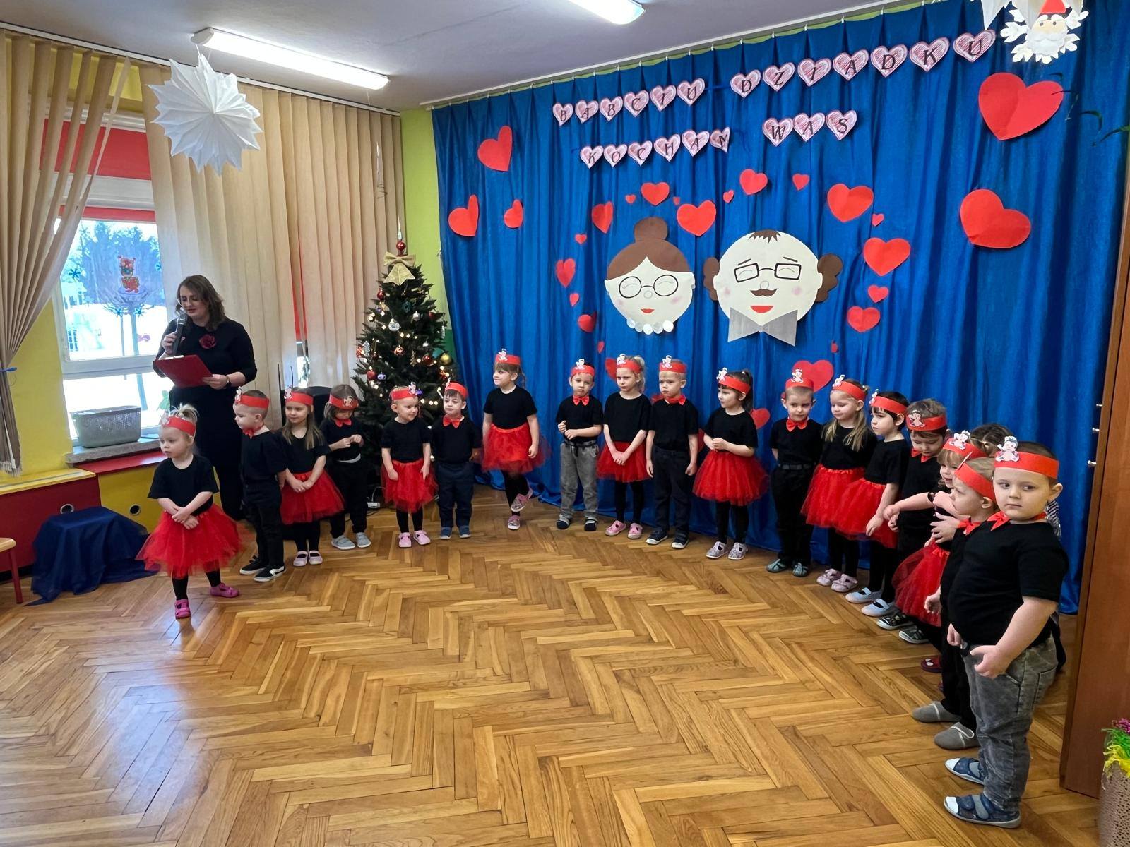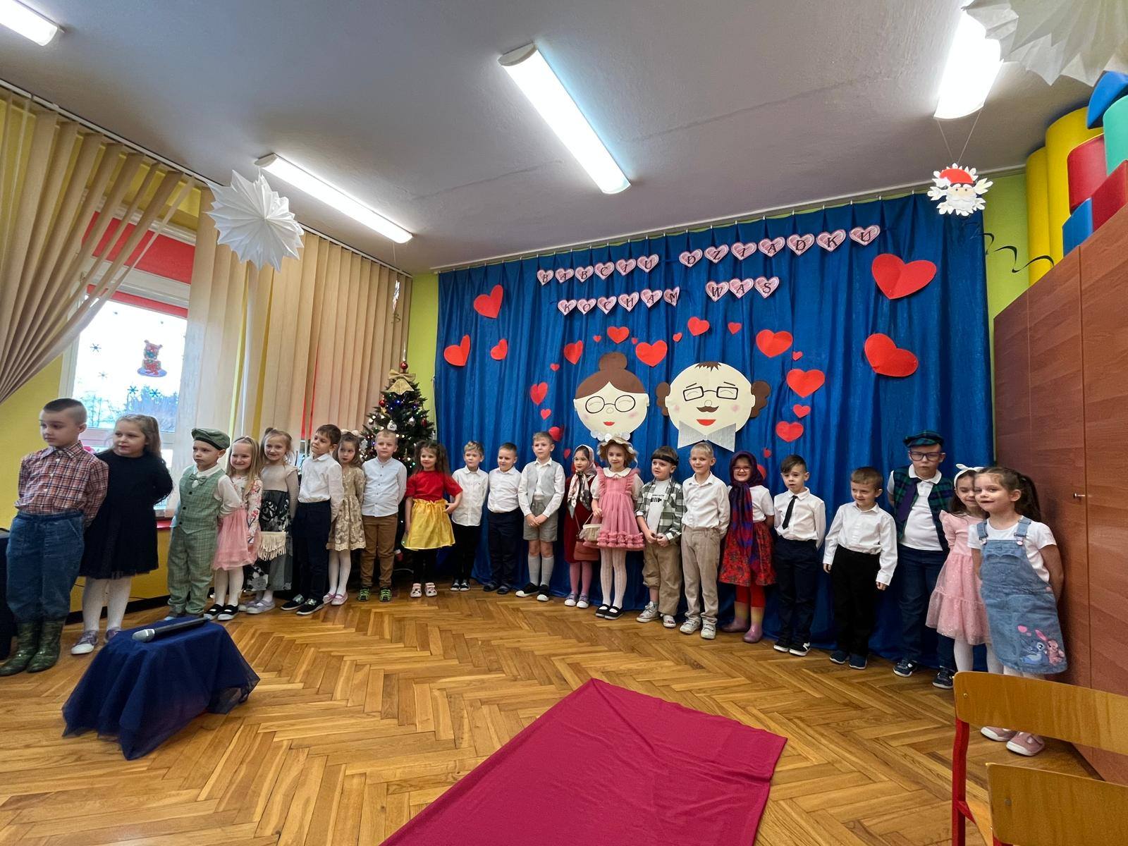 Z okazji Dnia Babci i Dziadka w naszym przedszkolu odbyły się wyjątkowe i pełne wzruszeń uroczystości. Tego dnia dzieci z wielkim zaangażowaniem i radością zaprezentowały przygotowany program artystyczny, na który złożyły się wiersze, piosenki oraz krótkie inscenizacje. Występy przedszkolaków były wyrazem miłości, wdzięczności i szacunku dla swoich ukochanych Babć i Dziadków.